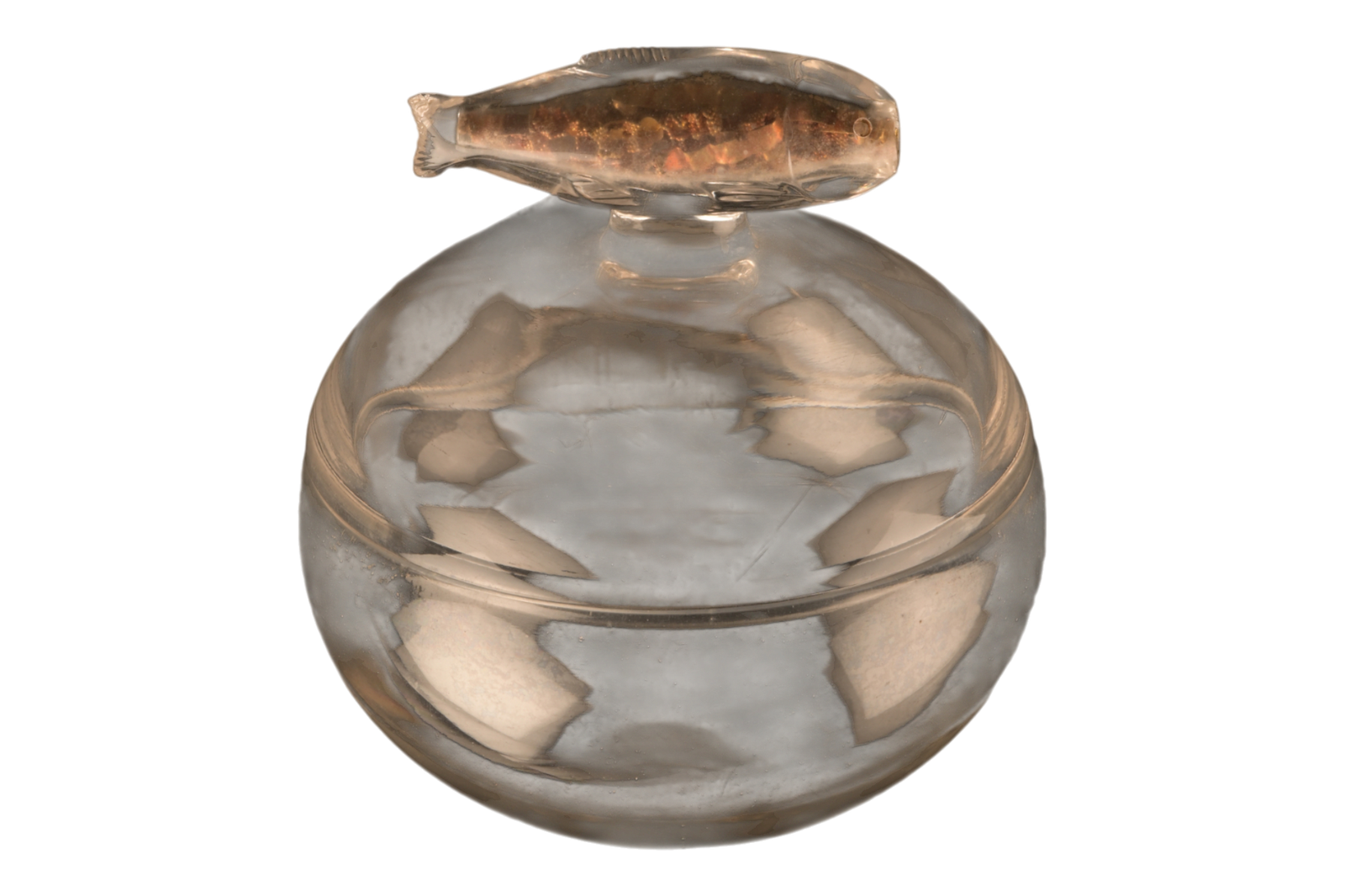 मछली के आकार के हैंडल वाला क्रिस्टल अवशेष पात्र, जो अपनी बेहतरीन कारीगरी के लिए जाना जाता है, पिपरहवा में मिले पाँच अवशेष पात्रों में से एक है। पारदर्शी क्रिस्टल से बना यह पात्र पवित्रता और निर्मलता का प्रतीक है, जबकि सोने से भरा इसका मछली के आकार का खास नॉब इसे भव्‍यता प्रतीकात्‍मक गहनता प्रदान करता है। बौद्ध प्रतिमा-लक्षण में, मछली आठ शुभ प्रतीकों (अष्टमंगल) में से एक है, जो निडरता और आध्यात्मिक मुक्ति को दर्शाते हैं अर्थात अस्तित्व के विशाल सागर में स्‍वतंत्रता से विचरण करना और दुख की लहरों से बेफिक्र रहना।